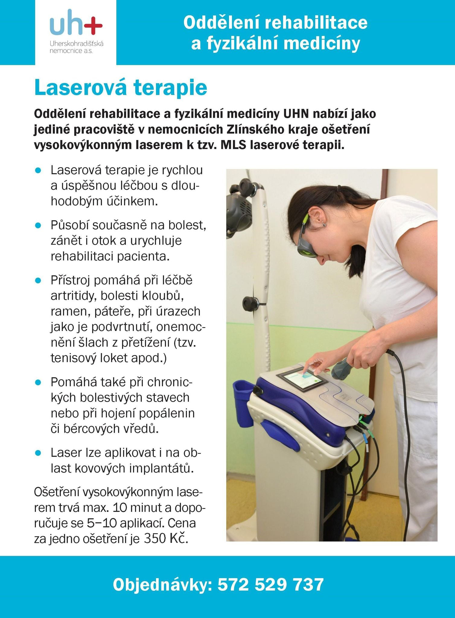- elektroléčebné procedury (magnetoterapie, subaqualní ultrazvuk, vacuum-kompresivní terapie, laseroterapie, distanční elektroléčba)