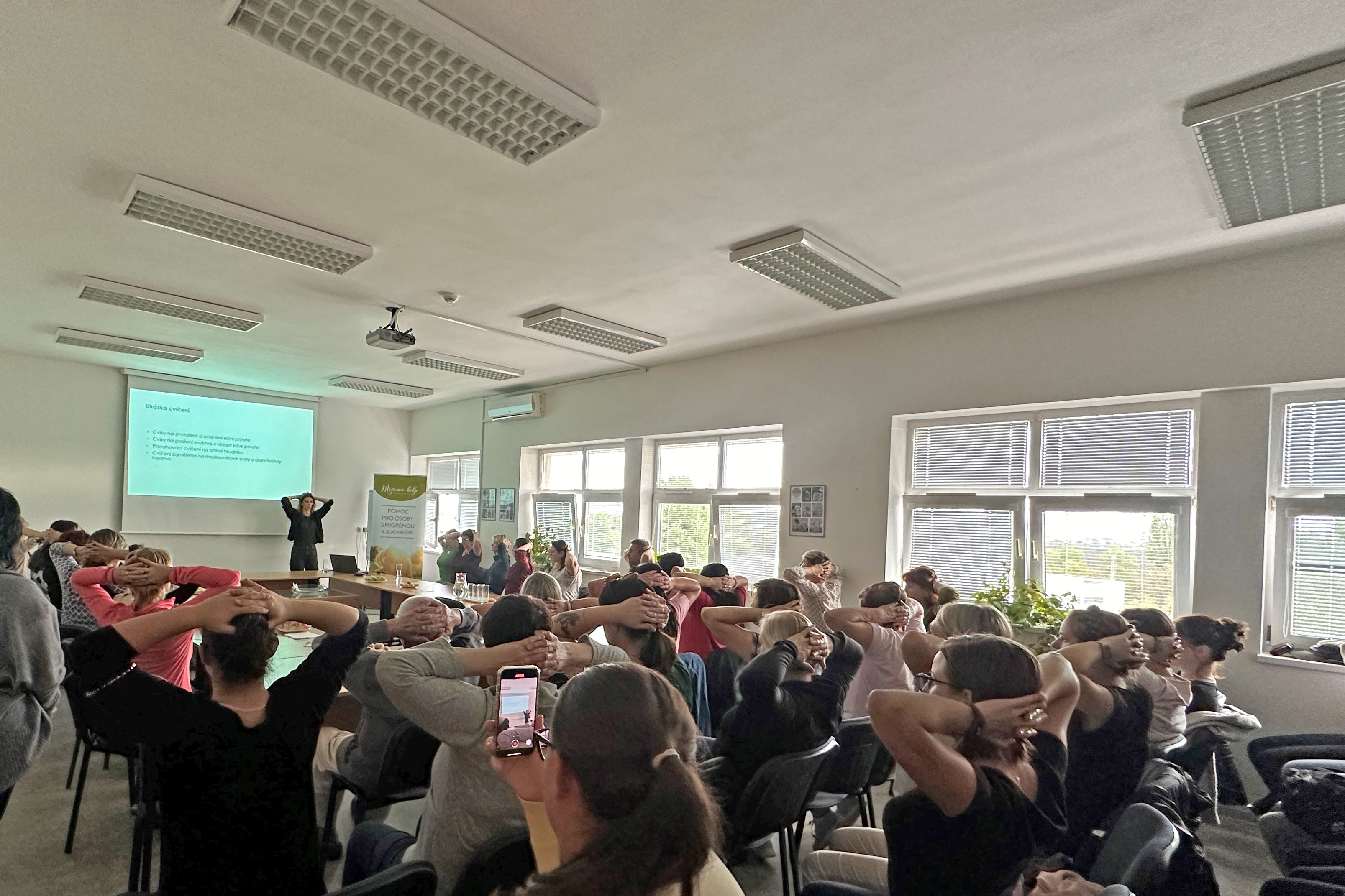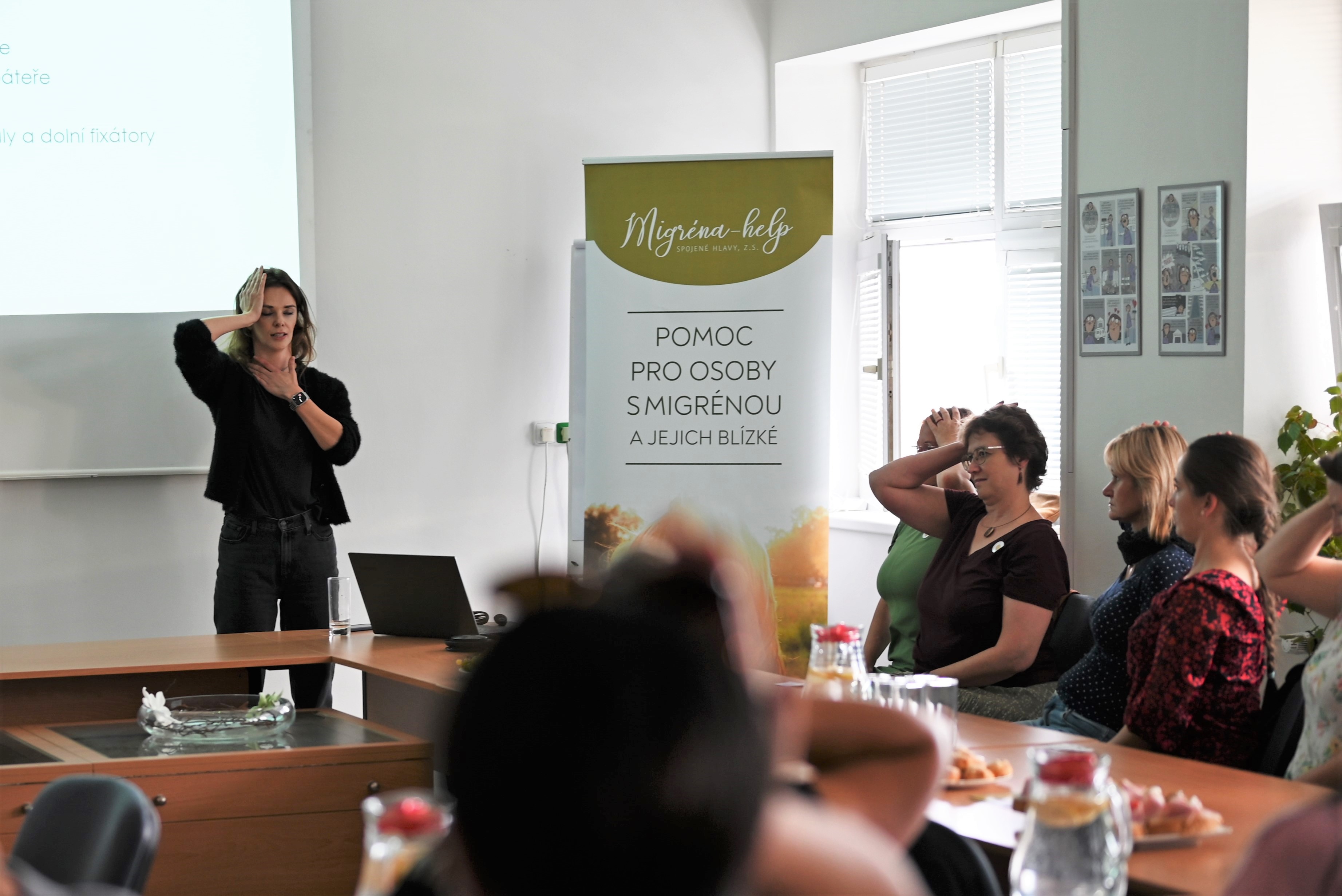 Desítky návštěvníků se během dne otevřených dveří mohly dozvědět mnoho užitečného o tom, co je migréna a jak na ni reagovat, pod vedením fyzioterapeutky si také vyzkoušely několik úlevných cviků. Individuální konzultace pak zájemcům nabídly lékařky Neurologického oddělení Uherskohradišťské nemocnice, které se léčbou migrény zabývají. Účastníci se také mohli seznámit s organizací Migréna-help, pomáhající migrenikům. Blíže ji představila její zakladatelka a předsedkyně, Mgr. Rýza Blažejovská, DiS.: