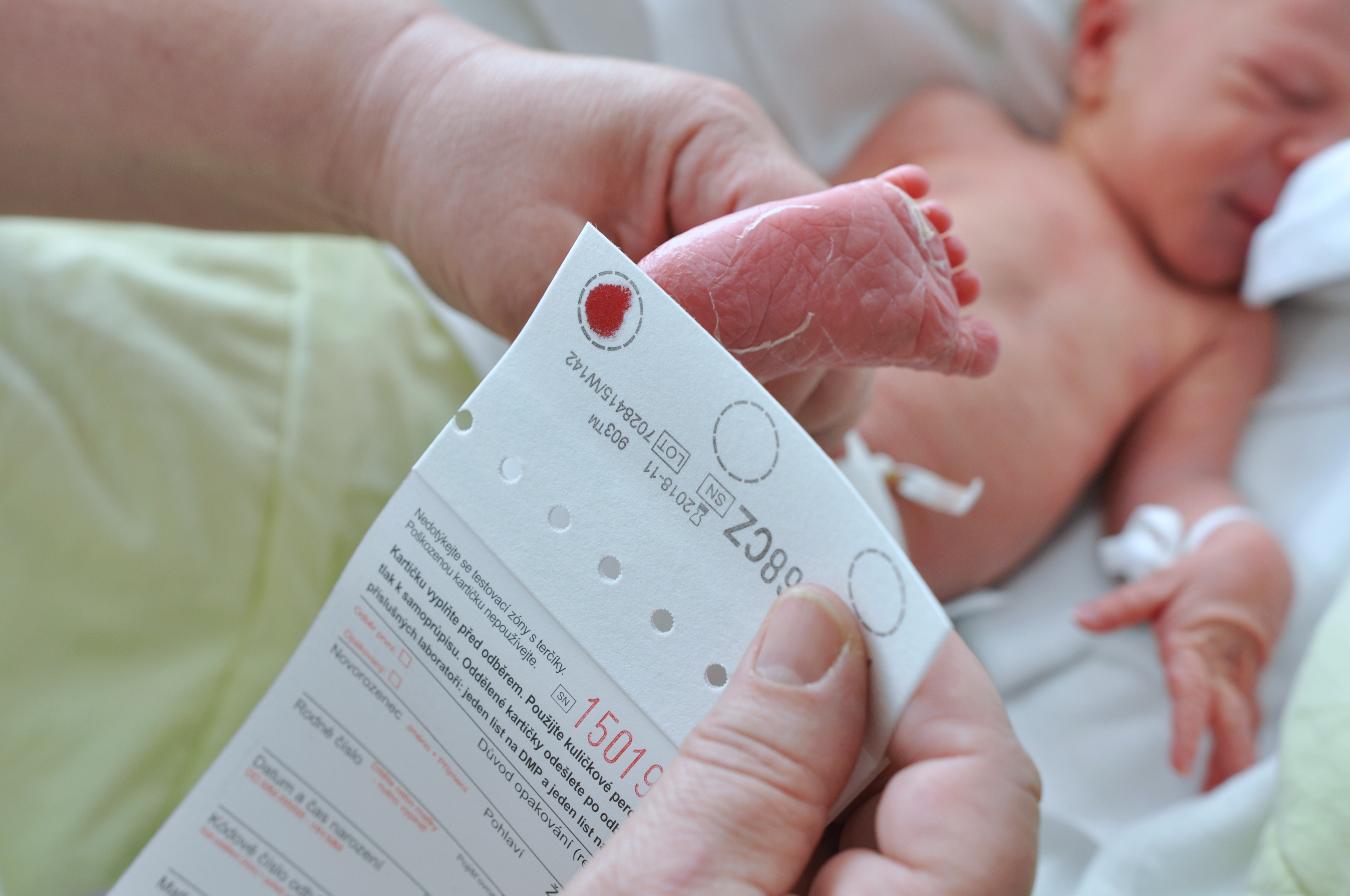 - odběr krve z paty k vyšetření vrozených a dědičných metabolických chorob – novorozenecký laboratorní screening,