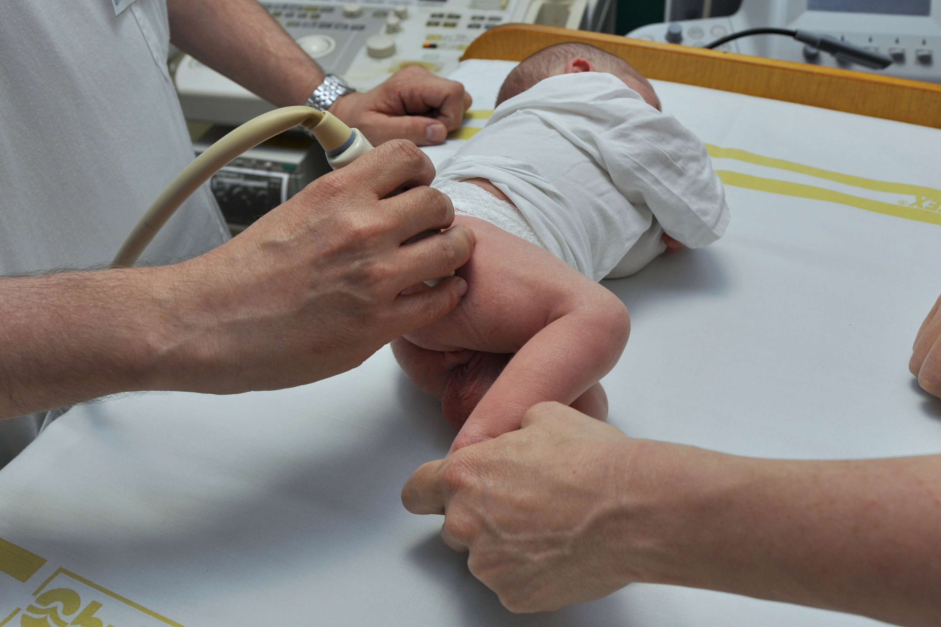 - vyšetření kyčlí a nohou klinicky a ultrazvukem,