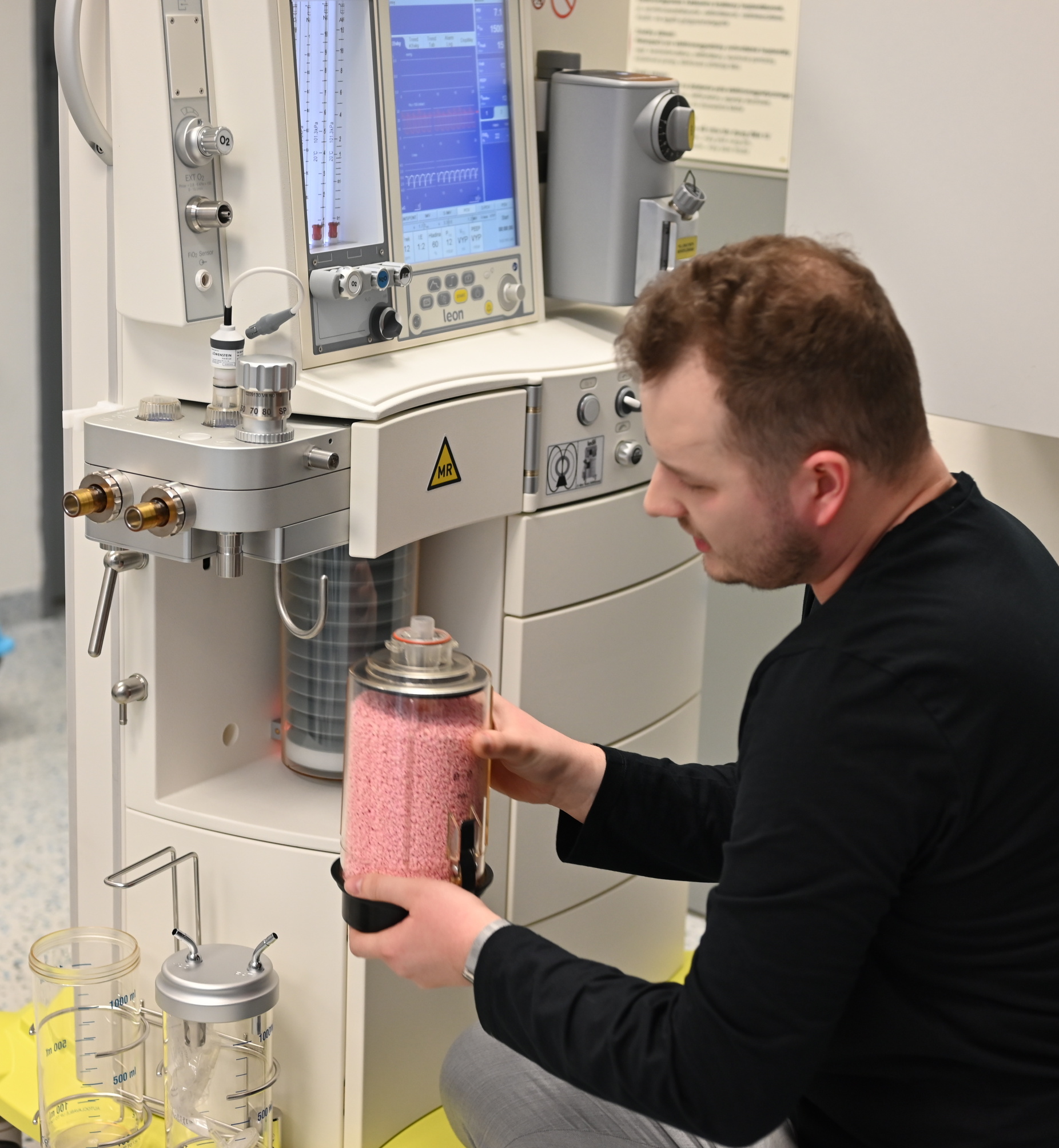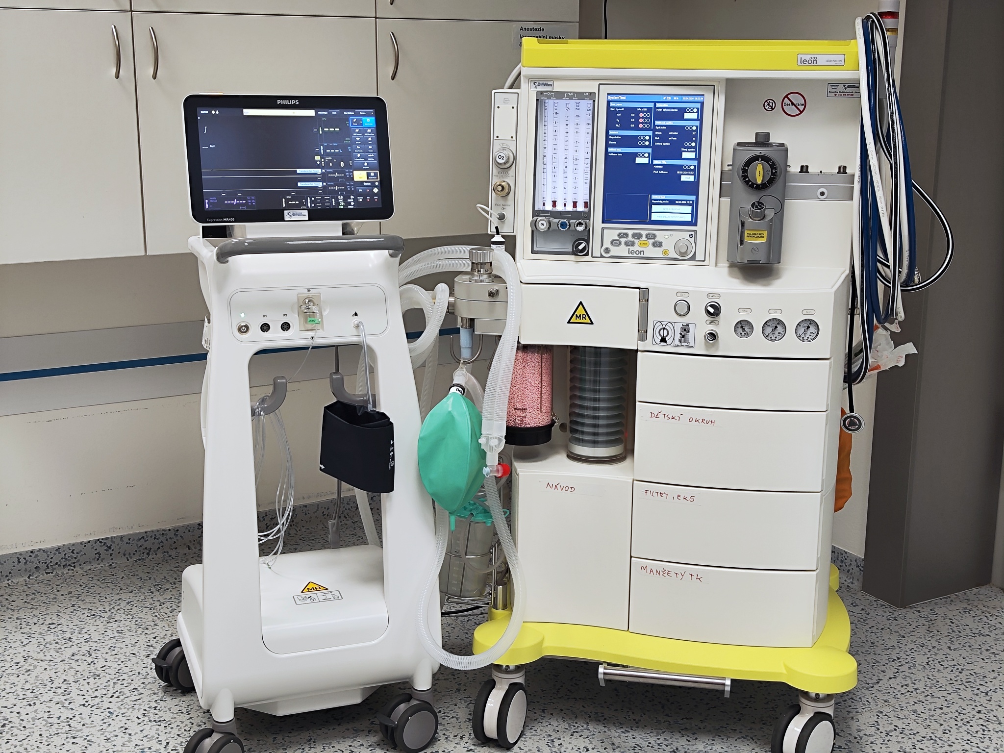 Anesteziologický přístroj Leon MRI sloužící pro podávání celkové anestezie je vybaven barevným dotykovým displejem, přesné dávkování plynů zajišťuje podsvícený blok pěti průtokoměrů. Nejnovější technologie poskytují obsluhujícím zdravotníkům optimální podporu pro práci během zákroků či při diagnostice. Zakoupený pacientský monitor slouží k monitorování základních životních funkcí se zaměřením na pacientovu bezpečnost, kvalitu sledování a rychlost ve zpracování dat.