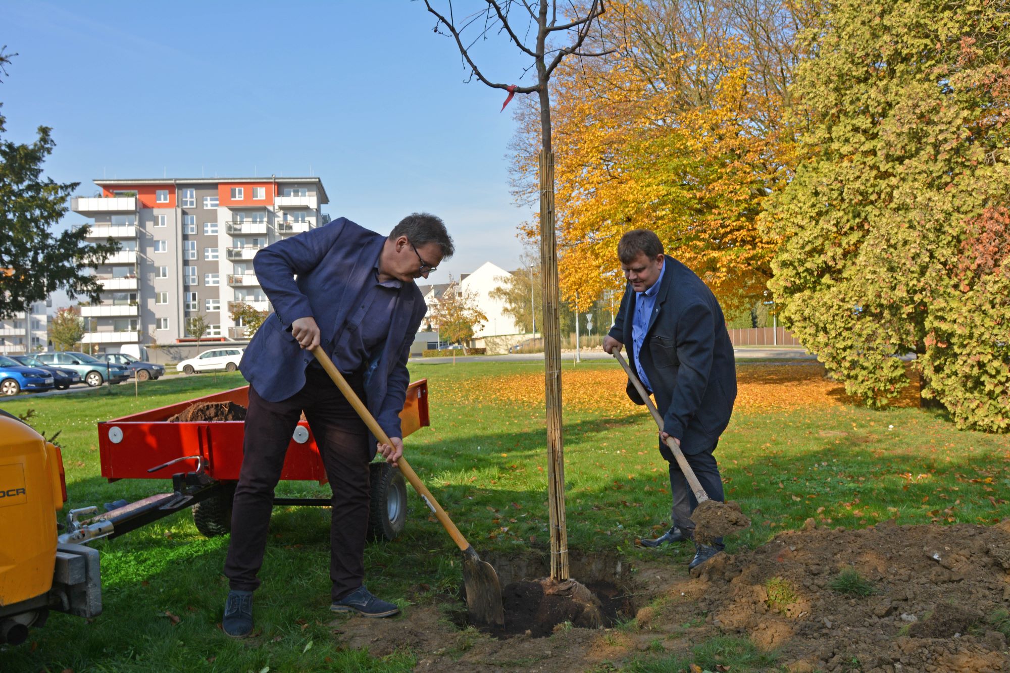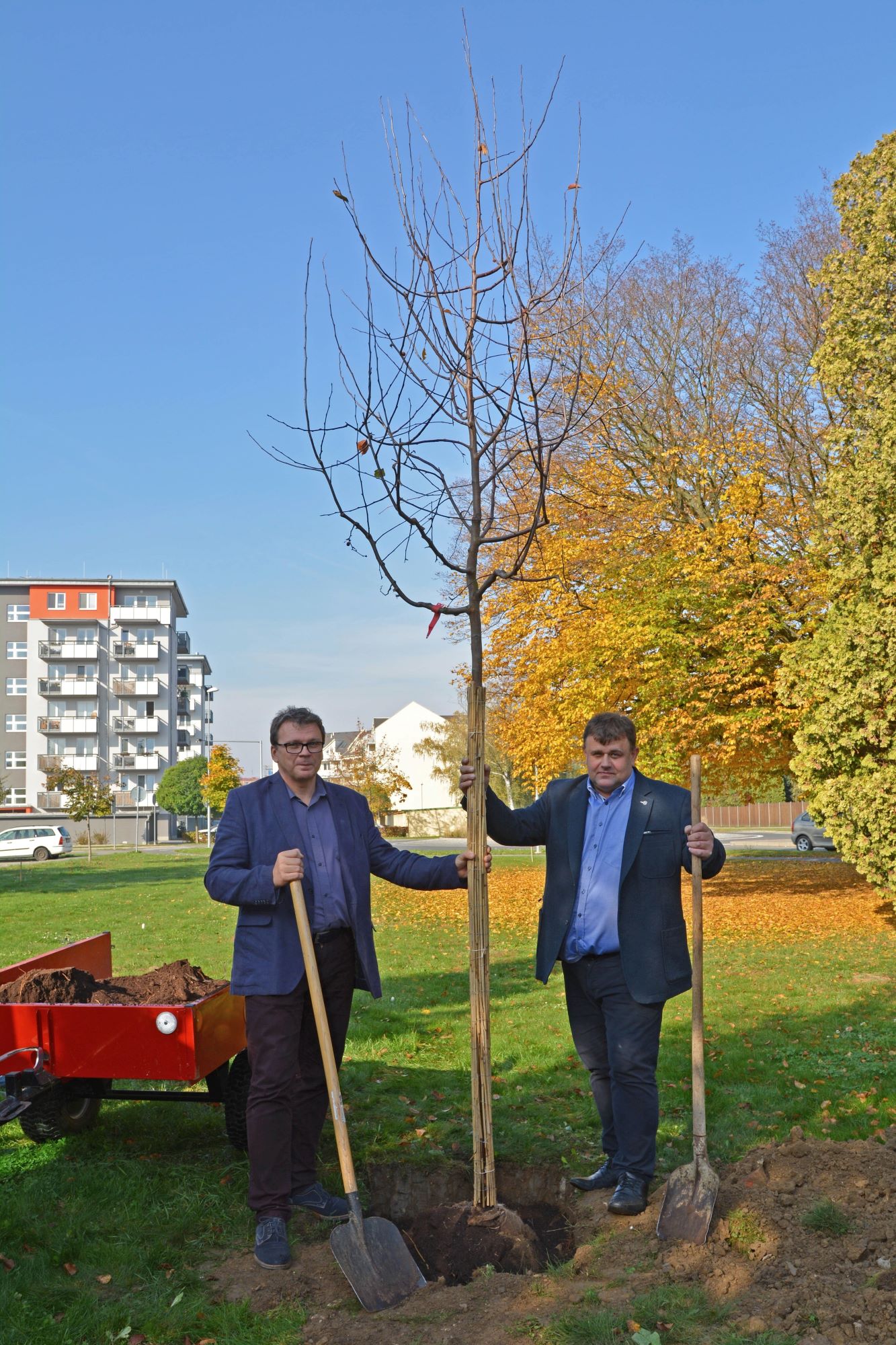 Jednu z okrasných jabloní věnovala například obec Mistřice, výsadby se osobně ujali starosta Vlastimil Jánoš a místostarosta Petr Blažek. „My jako zahrádkáři máme ke stromům blízko. Jsme proto spokojeni, že jsme vysadili právě jabloň,“ uvedl starosta obce. Patnáct stromů bylo vysazeno u porodnice, tuto možnost využily i některé rodiny, jimž se v Uherskohradišťské nemocnici narodily děti. Například Veronika a Roman Maňáskovi zasadili strom pro každého z jejich synů, půlročního i devatenáctiletého. „Dub je pro staršího syna Tomáše, který tady přišel na svět stejně jako Kubíček, který se nám narodil letos. Pro něj jsme vybrali platan, protože se nám líbí ten v hradišťském parku. Měli jsme v plánu stromy vysadit a když jsme na sociální síti viděli tuto nabídku, tak jsme neváhali,“ uvedl Roman Maňásek.